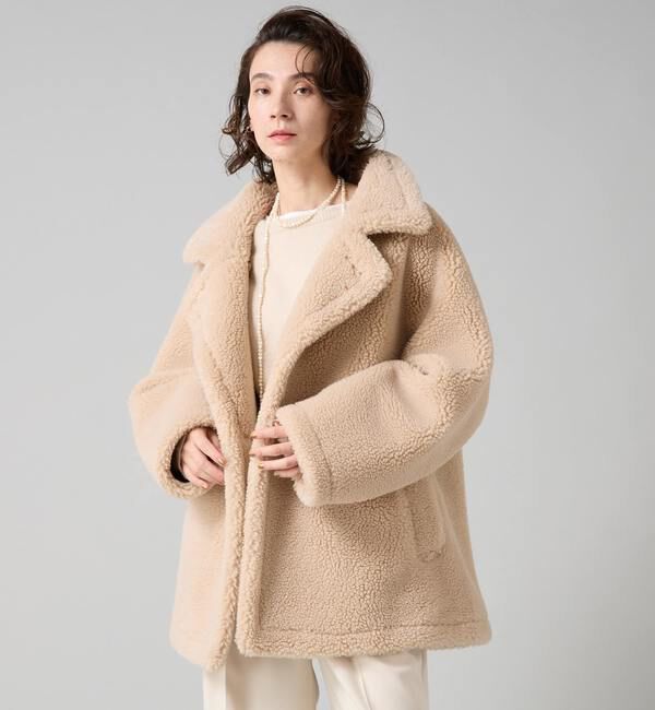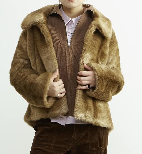 今年流行りのフェイクファーはキャメルなら重く見えません。