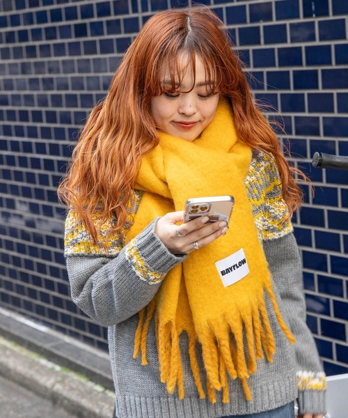 マフラーは暖かいだけなく、冬の差し色になるので冬の印象アップアイテムです。