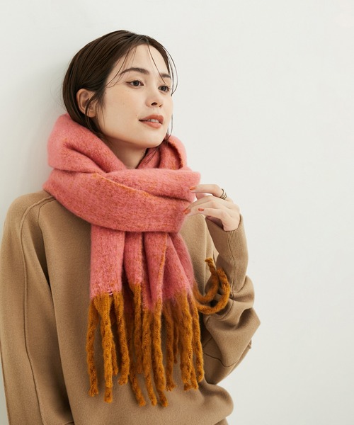 コーラルピンクはマフラーだったらと入れやすいですし、華やかな印象がアップします。