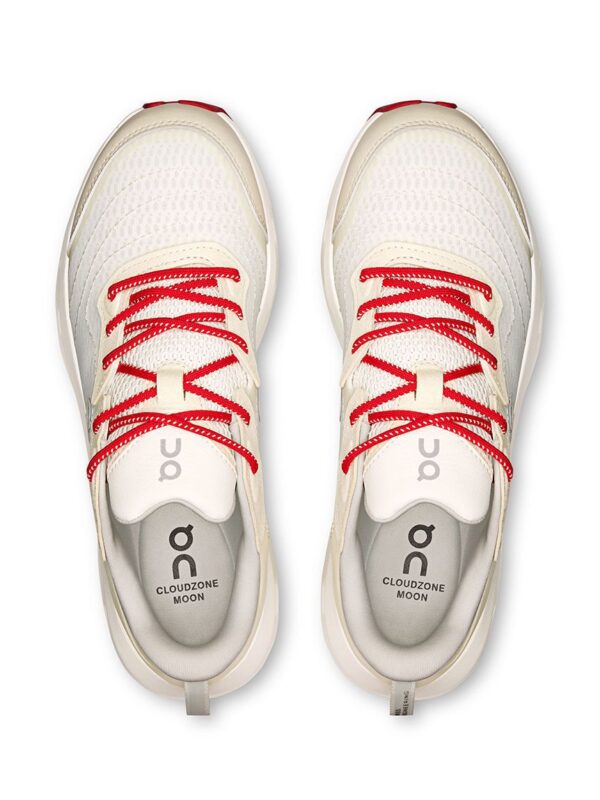 このスニーカーはつま先とひもがコーラルレッドでおしゃれ♪