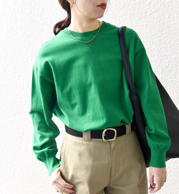 長袖グリーンならカーディガンの下に入れると冬にも活躍できそうです。