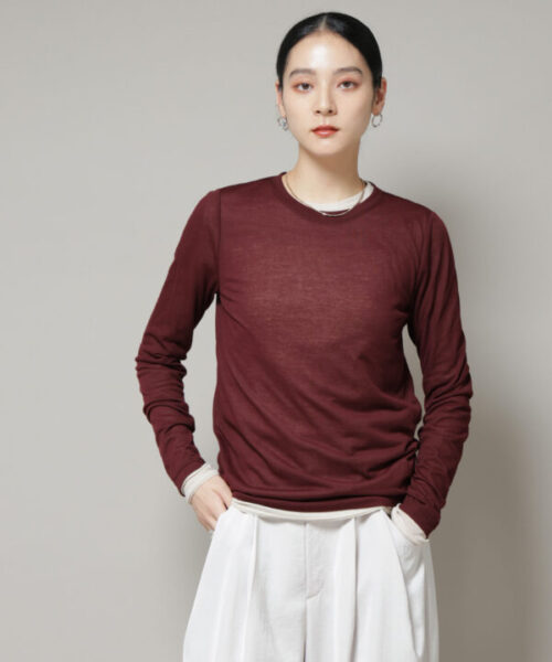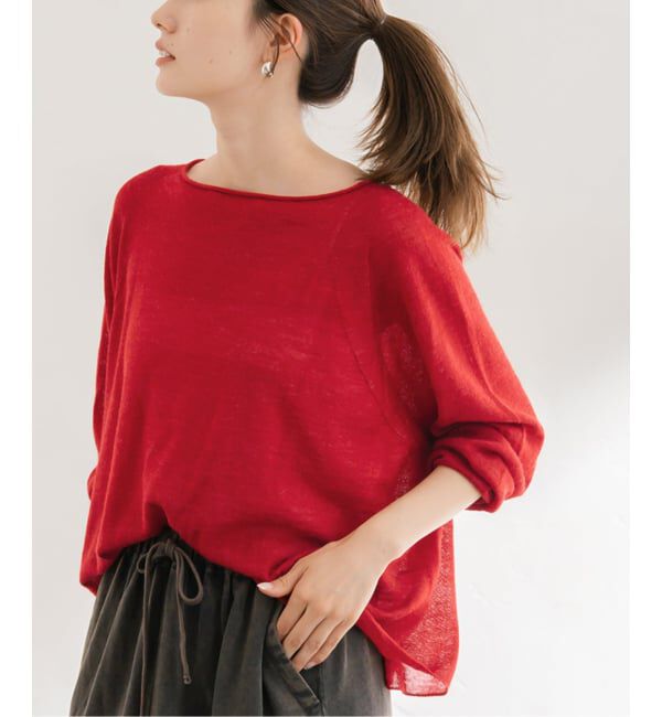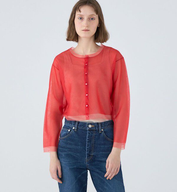 MACPHEE シアーレイヤー クルーネックカーディガン 35レッド