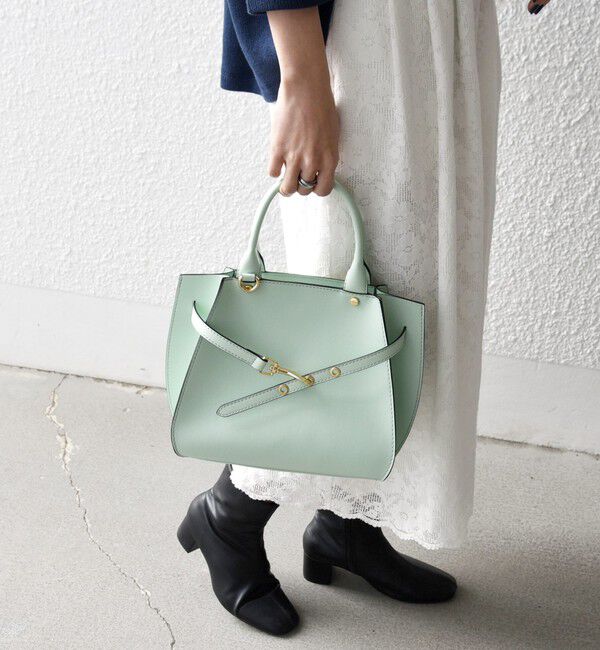 SHIPS any ベルト デザイン 2WAY スクエア バッグ ライトグリーン