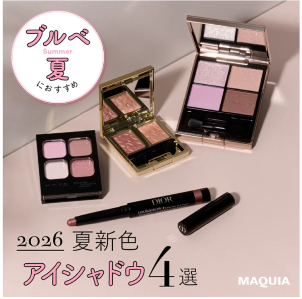 【ブルベ夏におすすめの2026年夏新色アイシャドウ4選】ディオールやKATEなど人気ブランドをスウォッチ!