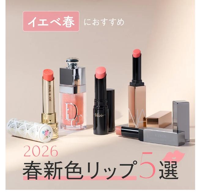 【イエベ春におすすめ!2026年春新色リップ5選】ディオール、NARSほか人気ブランドをつけ試し!