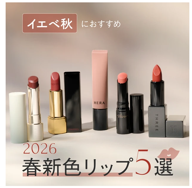 【イエベ秋におすすめ!2026年春新色リップ5選】シャネル、RMKほか人気ブランドをつけ試し!
