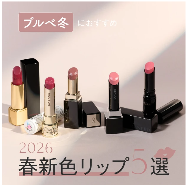 【ブルベ冬におすすめ!2026年春新色リップ5選】カネボウ ルージュスター、シャネルほか人気ブランドをつけ試し!