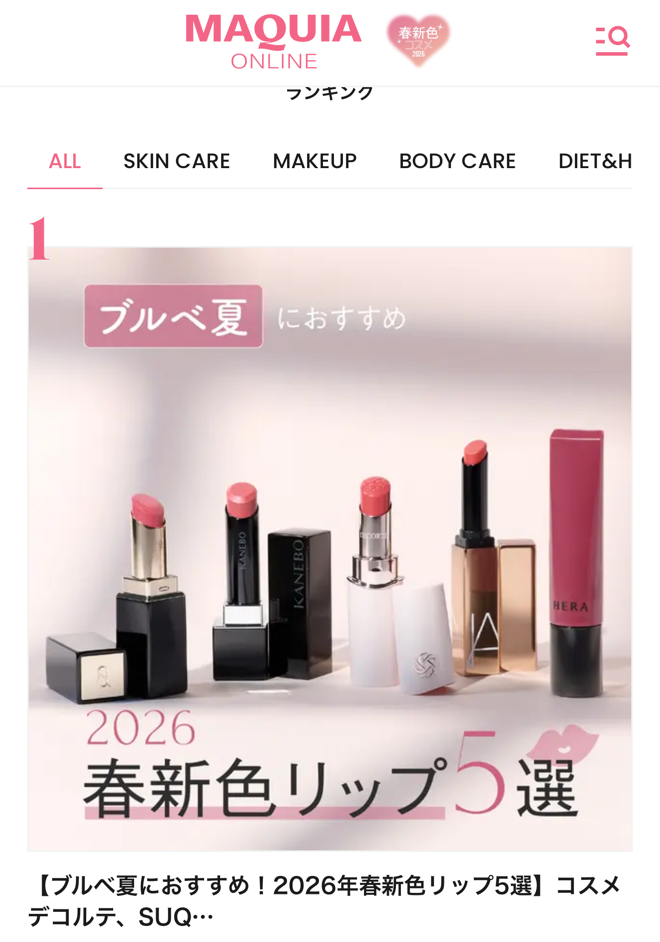 美容雑誌 MAQUIA(マキア)のオンラインで2026年の春新色リップをご紹介しています。